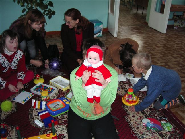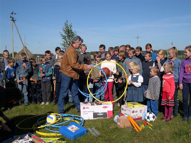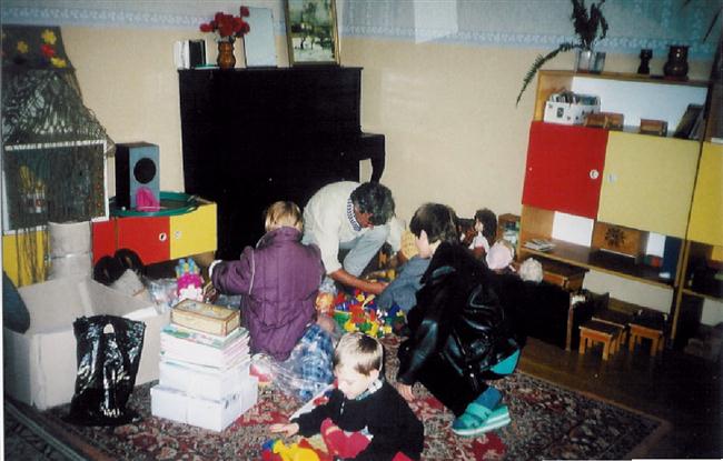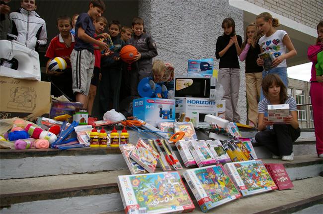 Van zendingsgeld geschonken door een school in Barneveld, werd een kinderopvangtehuis in een dorp nabij Bychov van allerlei speelgoed en ballen voorzien.
