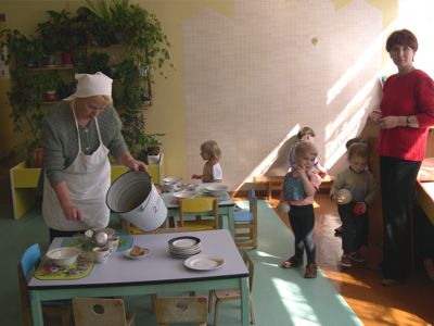 In Wit-Rusland zitten de kinderen al op jonge leeftijd van ‘s morgens vroeg tot het begin van de avond op school. Ze zijn er niet alleen om te leren, want de school verzorgt tevens de voor en naschoolse opvang omdat de ouder(s) moeten werken om een karig inkomen te realiseren.